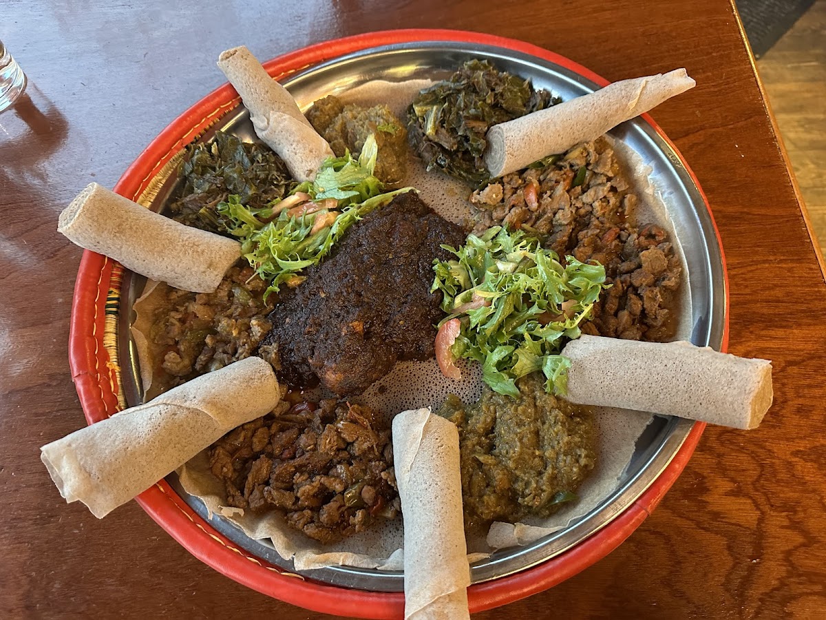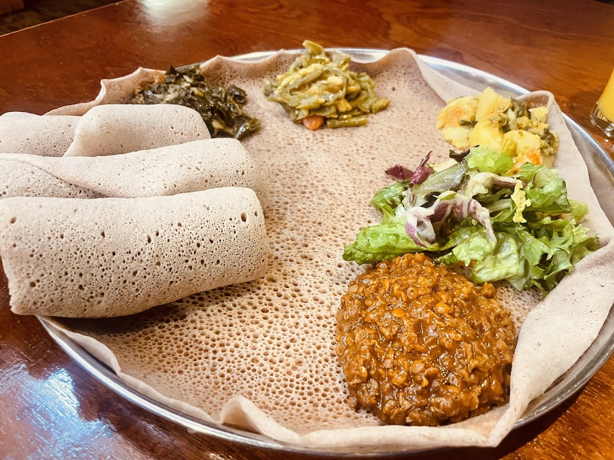 “Delicious vegan food, excellent service and good advice (I wasn't used to eating Ethiopian food). The coffee was perfect too So get ready to use your hands and really enjoy your food”